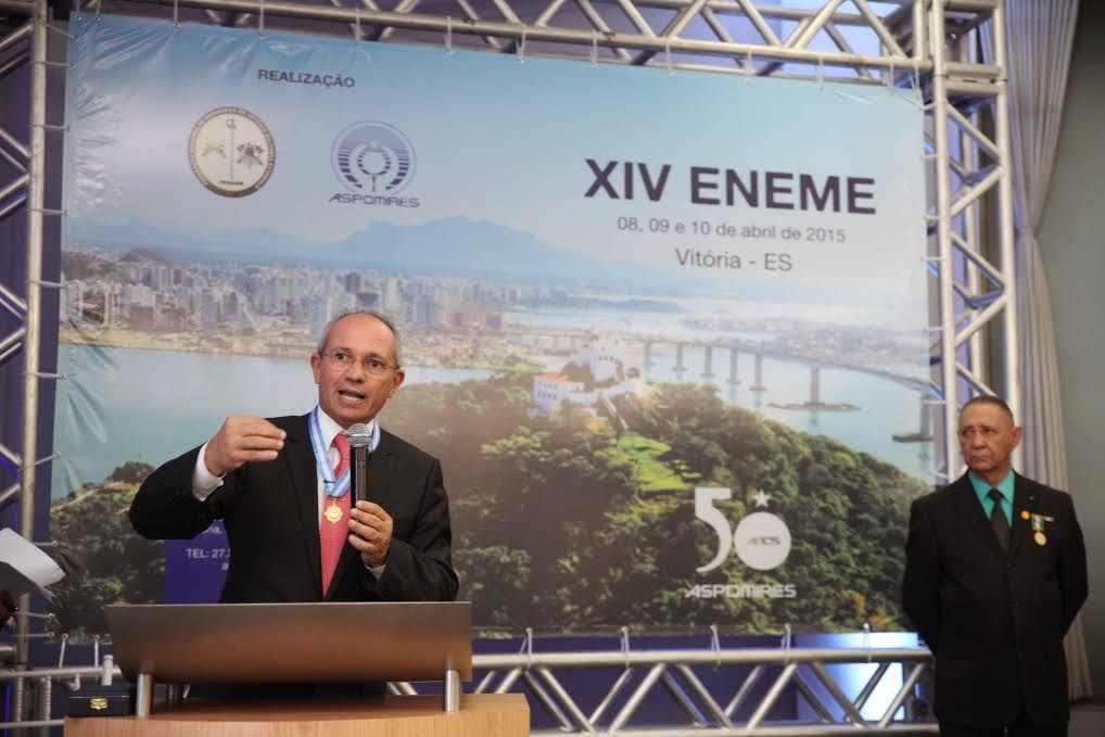 Ele recebeu a ‘Medalha Gran Mérito Aspomires Coronel Lumberto Maciel de Azevedo’ (um dos fundadores da entidade, em 1965) das mãos do presidente da Aspomires, capitão PM Ref Nailson Pedro Tolentino e fez um rápido discurso para os oficiais presentes ao evento, em que parabenizou a iniciativa da Federação Nacional de Entidades de Oficiais Militares Estaduais (Feneme). A ‘Comenda’ é em homenagem aos 50 anos da entidade: