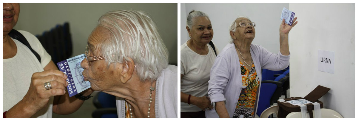 A investigadora aposentada Zalda Machado Vieira, de 89 anos, era só alegria quando chegou para votar na Chefatura de Polícia em Vitória. Mesmo com dificuldade de locomoção, ela fez questão de cumprimentar e beijar o máximo de colegas possível. Muito simpática e com um largo sorriso no rosto, ela se encaminhou à urna. Para ela, a idade não é problema nenhum pra votar. “Eu sempre votei e vou votar até quando Deus quiser”, afirmou a policial aposentada.