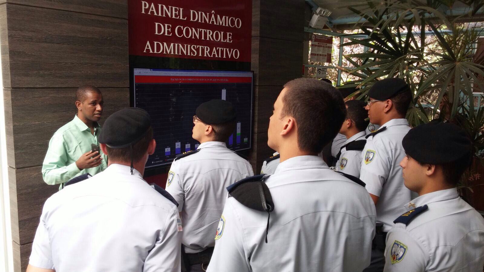 Os alunos-oficiais foram conhecer a aplicação de métodos técnicos e tecnologias avançadas na gestão de cidades. Durante o dia, conheceram o Sistema de Videomonitoramento, que conta com câmeras de última geração.