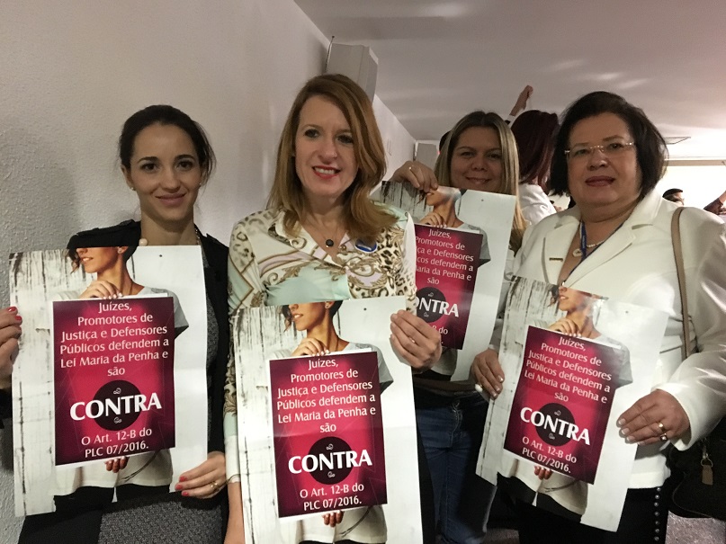 A Associação Nacional do Ministério Público (Conamp), a Comissão Nacional da Mulher Advogada da OAB e o Consórcio Nacional de Organizações, que agregam 71 entidades que elaboraram o anteprojeto que criou a Lei Maria da Penha, voltaram a se manifestar posição contrária à aprovação do Projeto de Lei Complementar 7/2016, que tramita no Senado Federal e apresenta dispositivo que permite ao delegado de Polícia a concessão de medidas protetivas de urgência a mulheres vítimas de violência doméstica e a seus dependentes sem consulta prévia ao juiz. A lei, hoje, segue o que determina a Constituição Federal, que permite somente à Justiça a decretação da medida protetiva.