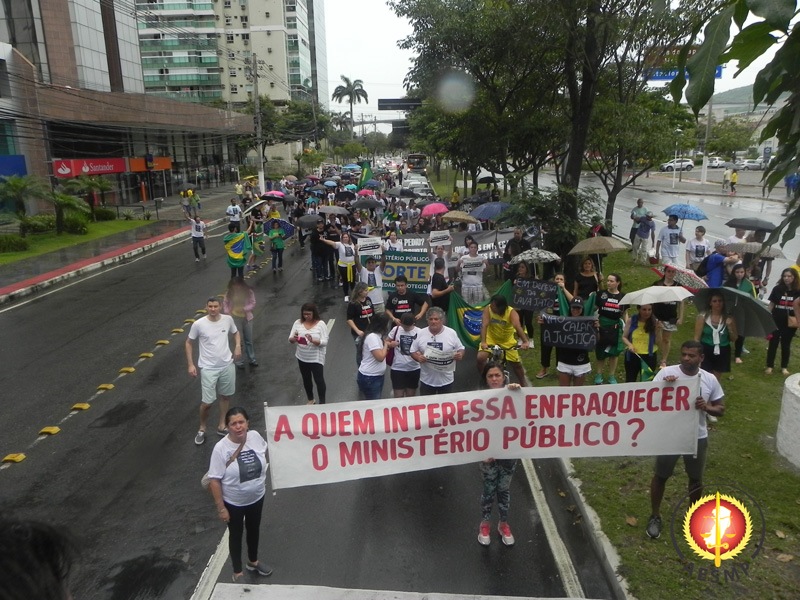 Membros do Ministério Público do Estado do Espírito Santo e da Magistratura saíram às ruas de Vila Velha e Vitória, na tarde de domingo (05/12), para protestar contra a corrupção e a impunidade. Ao mesmo tempo, pediram e conquistaram o apoio da população ao MP e à Justiça. Quando adentraram na Praça do Papa, por volta das 16h30, promotores, procuradores de Justiça e magistrados foram recebidos com aplausos e um “viva o Ministério Público” por uma multidão de mais de 3 mil pessoas. O povo também gritou: “Ninguém vai calar o Ministério Público”.