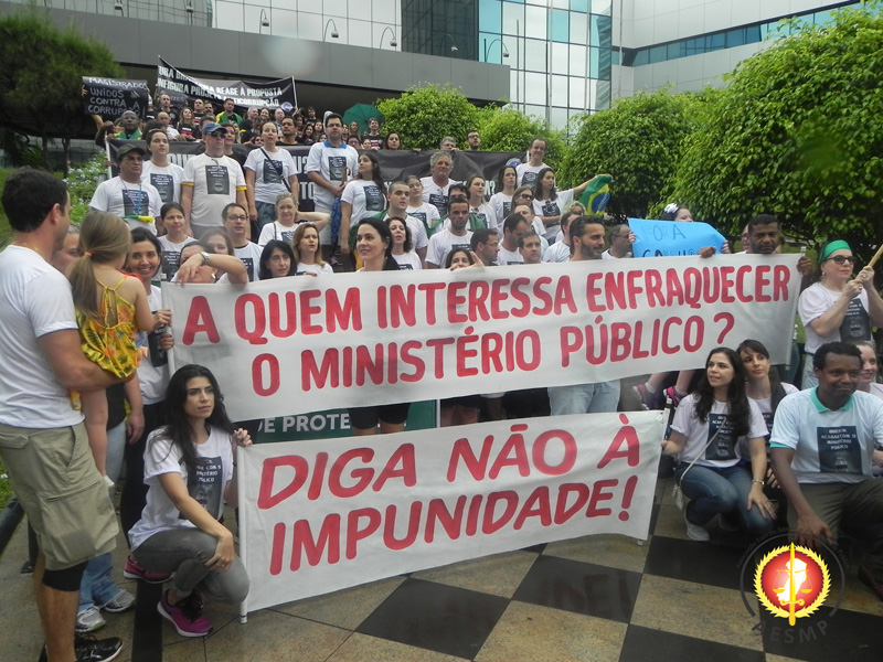 Neste momento, a multidão aplaudiu os Membros do Ministério Público e da Magistratura, gritando palavras de ordem como: “Lugar de corrupto é na cadeia”; “a Lava Jato não vai parar”; “Ninguém vai calar o Ministério Público”; “a Justiça não vai se intimidar”; “Ministério Público forte, é a sociedade protegida!”
