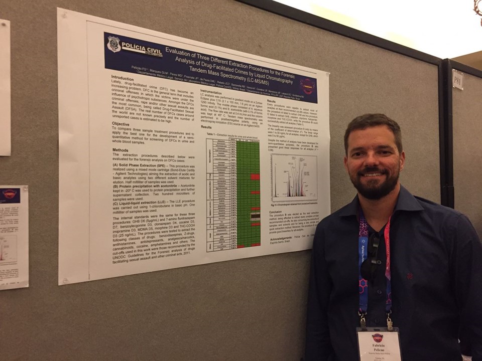 Para poder apresentar sua pesquisa durante o V Encontro Conjunto Anual da Sociedade de Toxicologistas Forenses e da Associação Internacional de Toxicologistas Forenses Encontro, cujo título em inglês “Evaluation of Three Different Extraction Procedures for the Forensic Analysis of Drug-Facilitated Crimes by Liquid Chromatography Tandem Mass Spectrometry (LC-MS/MS)”, Fabrício Pelição teve que submeter seu trabalho e seu currículo a uma banca.