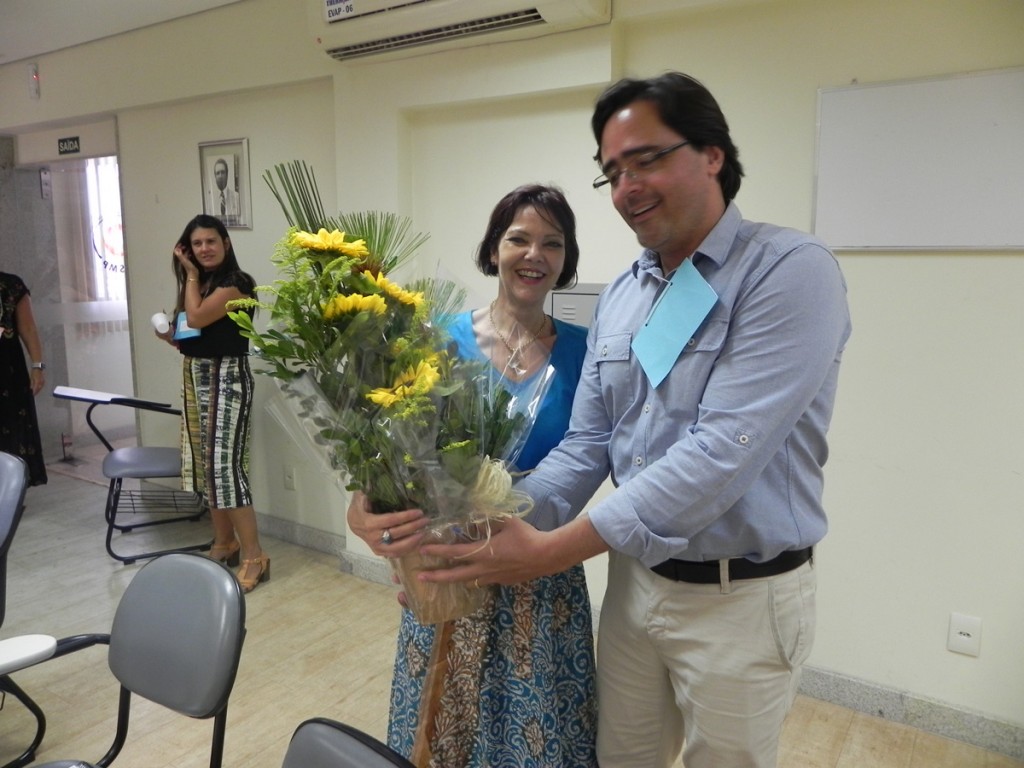 Ao final do curso, a juíza Patrícia Neves, responsável pela aula inaugural do evento, em 19 de fevereiro de 2018, foi homenageada com um buquê de flores, que recebeu das mãos do promotor de Justiça Francisso Martinez Berdeal.