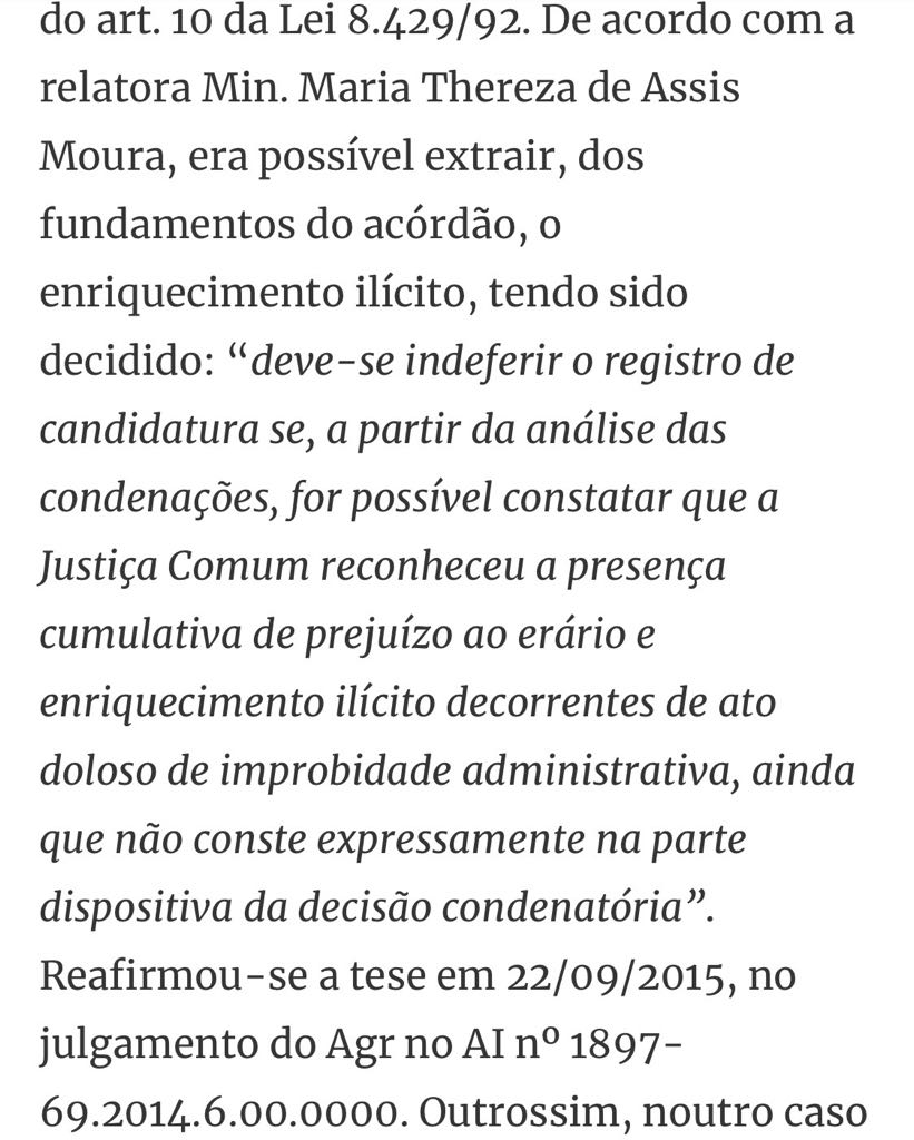 “Depende da condenação. Não é todo e qualquer crime que gera inelegibilidade. Há um rol da Lei da Ficha Limpa. Se a pessoa for condenada por um desses crimes e não tiver obtido a suspensão da inelegibilidade, pode ficar inelegível. Mas existe uma cláusula na própria lei que prevê a suspensão da inelegibilidade. Ou seja, neste momento é só conjectura. Dizer em junho que alguém vai estar inelegível em agosto é um exercício que a gente não faz”.