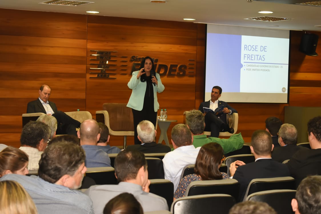 Pela manhã, a senadora participou, ao lado dos demais postulantes ao cargo, a um debate promovido pela TV Tribuna. À tarde, Rose de Freitas foi sabatinada sede da Federação das Indústrias do Espírito Santo (Findes), em Vitória. Na sabatina feita para empresários, Rose afirmou que, se eleita, vai combater a sonegação fiscal no Espírito Santo para ampliar investimentos – uma possibilidade, por exemplo, para contemplar as Polícias Civil e Militar e qualificar a área de Segurança Pública.