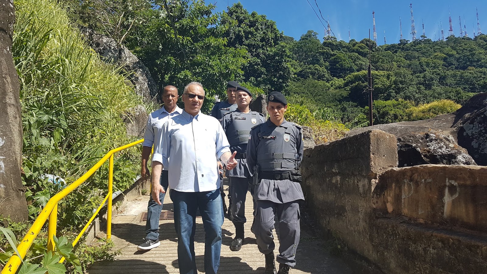 Em seguida, Roberto Sá subiu as escadarias do morro e, já na parte alta, foi recebido pelos militares que rondavam as áreas de mata da Piedade. Eles integram operações realizadas diariamente nos morros de Vitória.