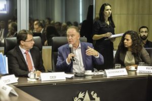 Membros do Judiciário e do Ministério Público Estadual participaram mais uma vez da reunião do Estado Persente. Entre os representantes, estavam o promotor de Justiça Paulo Panaro e a juíza Gisele Souza de Oliveira. Ambos atuam no sistema de Justiça Criminal e foram informados que o acordo de cooperação para utilização do Afis da Polícia Federal busca aumentar ainda mais a eficácia do Estado na redução da letalidade. Dados da Sesp mostram que o Espírito Santo fechou o mês de junho e o primeiro semestre de 2019 com reduções históricas de homicídios.