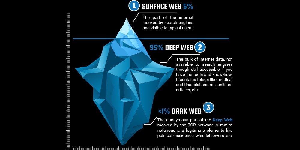 A internet é como um grande iceberg. A parcela que a população conhece, utiliza em seu cotidiano e pode ser encontrada utilizando qualquer canal de busca é a superfície. A Deep é composta por sites não indexados, mas que podem ser encontrados. Normalmente é onde ficam os dados sigilosos.