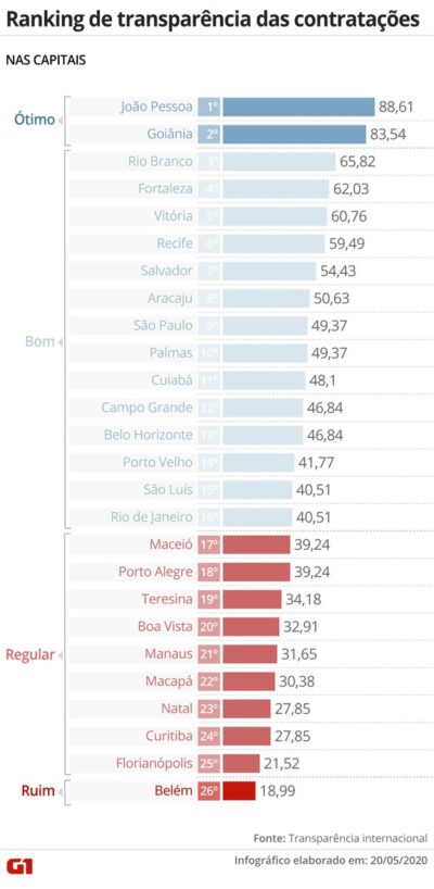 Para analistas, o resultado indica que boa parte dos governos estaduais e municipais não está cumprindo as exigências da Lei Federal nº 13.979/2020, que regulamentou as medidas para enfrentamento da emergência de saúde pública decorrente da pandemia do coronavírus. A legislação exige transparência nas contratações emergenciais.