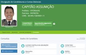 Ministério Público Eleitoral (MPE), por meio da Promotoria da 52ª Zona Eleitoral de Vitória, ajuizou uma ação cautelar em face do deputado estadual Lucínio Castelo de Assumção (Patriotas), conhecido como Capitão Assumção, que, mesmo na condição de candidato a prefeito da capital capixaba, está utilizando símbolo e farda da Polícia Militar no material de campanha veiculado nos perfis das redes sociais, bem como no próprio site do Tribunal Superior Eleitoral (TSE).