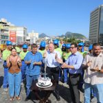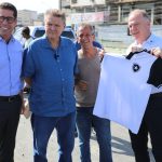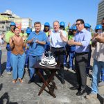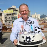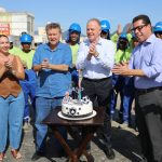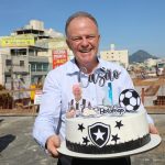 O governador Renato Casagrande (PSB) ganhou uma surpresa, na manhã desta terça-feira (03/12), durante visita técnica às obras do viaduto sobre a Avenida Mário Gurgel – trecho municipalizado da BR-262 –, em Campo Grande, Cariacica. Aniversariante do dia – ele faz 64 anos de idade –, Casagrande ganhou um bolo temático do Botafogo e uma camisa desse seu time de coração, que, no último sábado (30/11), conquistou pela primeira vez o título da Libertadores. O governador ganhou até os ‘Parabéns, pra você!’, cantada por amigos e funcionários da empresa responsável pela construção do viaduto.