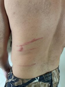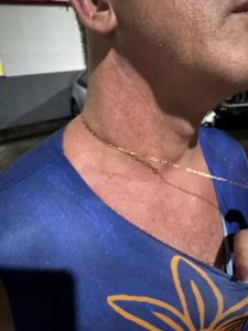 Neste instante, um dos seguranças do prefeito, que também estava de posse do mesmo tipo de pulseira “acesso livre”, dá um golpe “mata-leão” no coronel Anechini, que permanece sem reagir. O oficial foi jogado no chão pelos seguranças. Após alguns instantes, o coronel é solto pelo segurança e segue para o seu camarote pelo local em que minutos antes havia sido impedido de passar. O subsecretário da Casa Militar ficou com marcas de agressões no pescoço e nas costas.