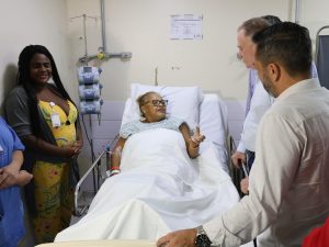 No hospital, Renato Casagrande e Tyago Hoffmann visitaram dona Maria Aparecida, moradora de Piúma, que na segunda-feira (26/05) fez a cirurgia de quadril. O governador conversou com a paciente, a quem desejou pronta recuperação. Ela terá alta e já pode começar a anda normalmente, segundo os médicos. Casagrande gravou um vídeo com a paciente.