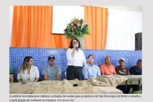 A prefeita de São Domingos do Norte, Ana Malacarne (MDB), reconheceu a importância da entrega aos agricultores do município. “Só gratidão, né? Hoje é um dia especial na nossa prefeitura, porque o agricultor, o produtor rural, ele fica assim, deslumbrado. Porque hoje uma muda de cacau está saindo a quase R$ 17. E ganhar muda de cacau hoje é um projeto divino, um projeto especial”, afirmou.