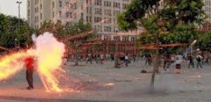 O cinegrafista da Band e mais de 100 jornalistas, que pertenciam ao grupo denominado de black block – em que os criminosos cobriam o rosto nas manifestações sempre violentas. Os participantes dos protestos promoviam a depredações, barricadas e respondiam às bombas da polícia com rojões e pedras. Esses atos ocorreram em várias partes do Brasil entre 2013 e 2014.