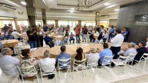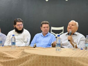 Lideranças políticas – prefeitos, vereadores e deputados estaduais –, religiosas, empresariais e comunitárias do Sul do Espírito Santo promoveram, nesta quarta-feira (01/10), uma homenagem e um ato de apoio à pré-candidatura do “melhor prefeito da Grande Vitória”, Euclério Sampaio (MDB), ao Senado Federal nas eleições de outubro de 2026. O encontro, seguido de um almoço, aconteceu no Cerimonial Bom Gosto Sport, no bairro Paraíso, em Cachoeiro de Itapemirim. Mais de 200 pessoas compareceram ao evento.