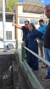 Em Jerônimo Monteiro, Emanuela Pedroso, ao lado do prefeito Zé Valério (PSD) e do vice-prefeito Genaldo Ribeiro (PSB), realizou visita técnica onde identificou a necessidade de desassoreamento de córregos que cortam a cidade, obra que requer repasse de recursos do Governo do Estado. Ela explicou que o município foi fortemente atingido por chuvas e a intervenção de adaptação climática em parceria do Governo Estadual com a Prefeitura é necessária para proteger a vida e os bens patrimoniais dos moradores.
