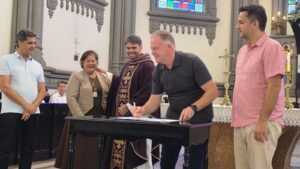 O governador Renato Casagrande e o vice-governador Ricardo Ferraço assinaram, no domingo (02/11), o termo de fomento para as obras de restauro da Catedral Metropolitana de Vitória. A iniciativa é fruto da parceria entre o Governo do Estado, por meio da Secretaria da Cultura (Secult), e a Mitra Arquidiocesana de Vitória – Paróquia Nossa Senhora da Vitória.