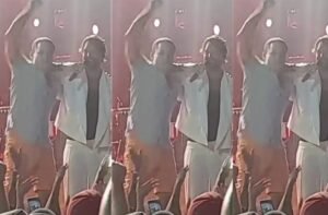 Em seguida, conforme mostra o vídeo, um grupo de pessoas próximo à estrutura do palco começou a entoar gritos de “governador”, direcionados ao prefeito, que tem se movimentado para disputar o cargo de chefe do Executivo Estadual nas eleições de outubro deste ano. Como reação, o prefeito da Capital do Espírito Santo, com a mão esquerda, abraçou o cantor e, com a direita, fez gestos para a plateia, repetindo o coro de parte da galera – gritando também “governador” – e jogando beijos para o público.
